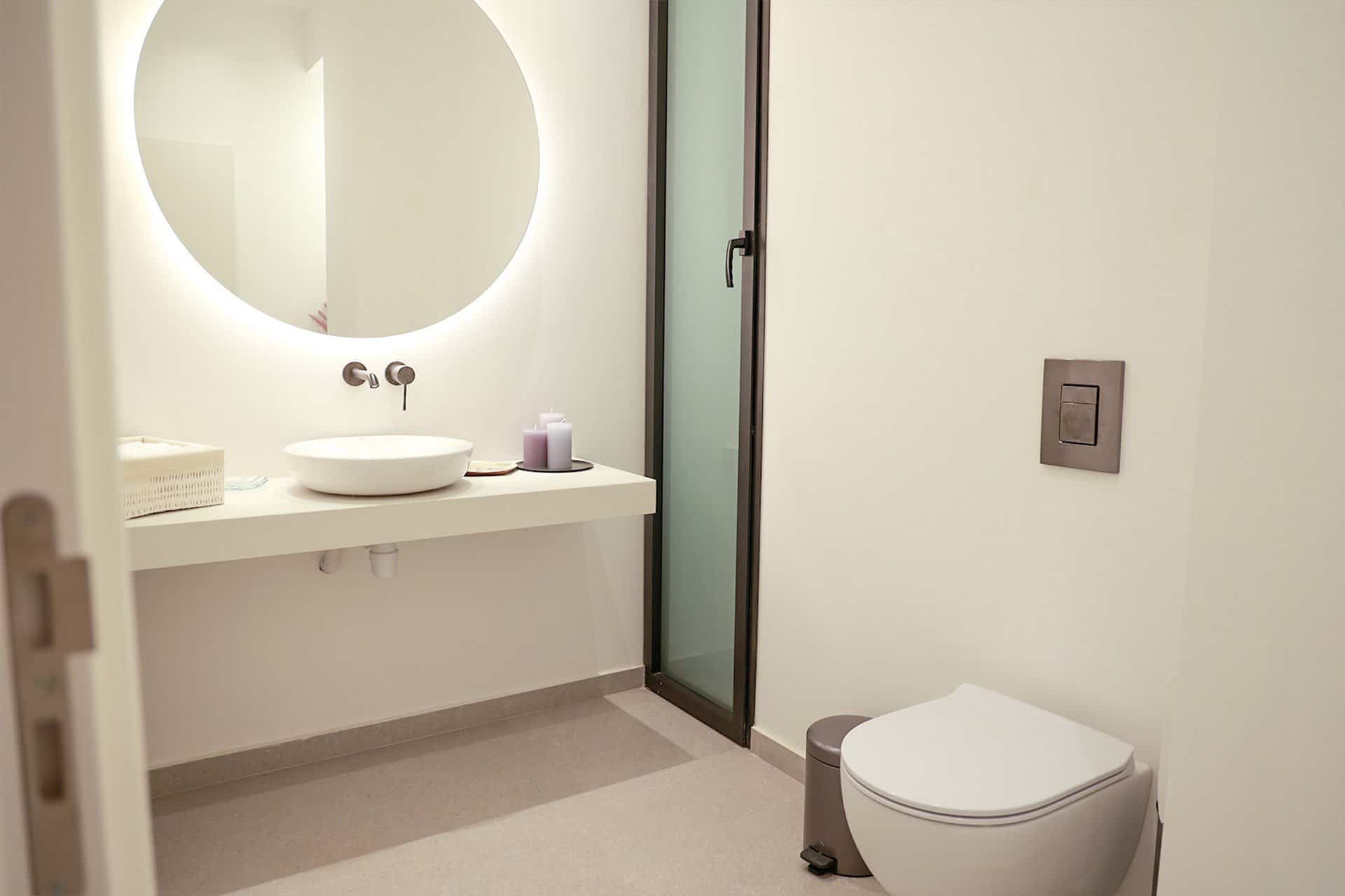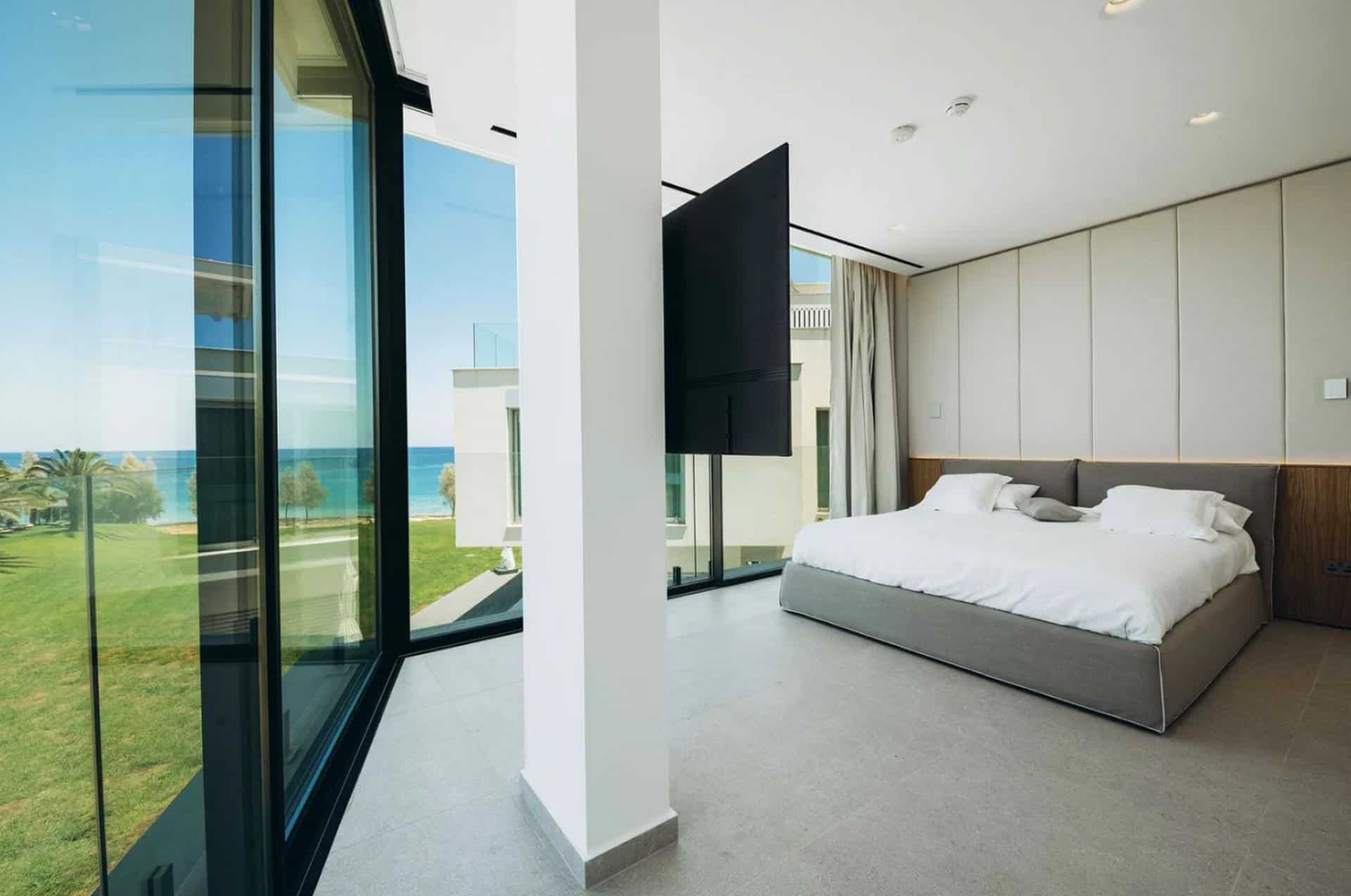 Villa Venus includes a private roof terrace 126 sqm that offers the most amazing panoramic views of the coastline, where you can sit relax or enjoy an amazing movie night under the stars. The roof includes a second fully equipped kitchen and a guest bathroom. Furthermore, on the roof you can find a 3-person jacuzzi where you can sit back relax and enjoy the infinite blues.
